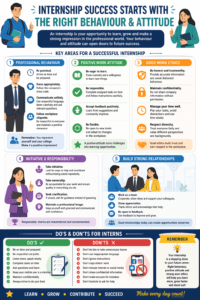 Internship is an important milestone for diploma students in private colleges. It provides an opportunity to apply classroom knowledge in real workplace settings, develop professional skills, and gain valuable industry exposure. However, success during internship does not depend only on academic knowledge. Students must also demonstrate the right behaviour and positive attitudes to create a strong impression and gain meaningful learning experiences.